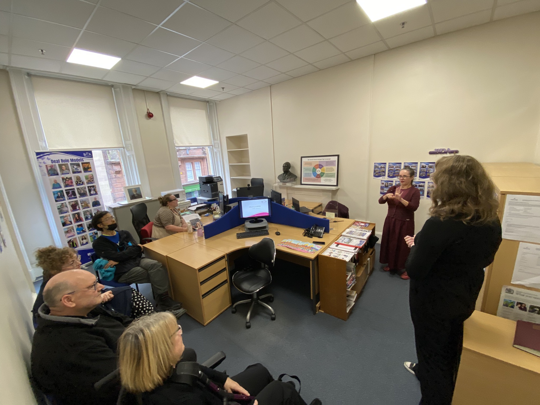 Filter CategoriesAll photos20252024202320222021202020192018 West Dunbartonshire Council's Digital Training 25.08.2025 West Dunbartonshire Council's Digital Training 25.08.2025 Teachers' UNCRC Rights workshop 24.09.2025 Teachers' UNCRC Rights workshop 24.09.2025 Stirling-Heritage-Walking-Tour-30.09 Stirling-Heritage-Walking-Tour-30.09 ScotRail's Disability Month event at Glasgow Queen Street 07.07.2025 ScotRail's Disability Month event at Glasgow Queen Street 07.07.2025 ScotRail's Disability Month event at Glasgow Central Street 07.07.2025 ScotRail's Disability Month event at Glasgow Central Street 07.07.2025 Mark Griffin MSP at 10 years celebration in Scottish Parliament 01.10.2025 Mark Griffin MSP at 10 years celebration in Scottish Parliament 01.10.2025 Glasgow Open Doors Day in BDA Scotland's Office 18.09.2025 Glasgow Open Doors Day in BDA Scotland's Office 18.09.2025 Glasgow Black History Tour 02.09.2025 Glasgow Black History Tour 02.09.2025 Glasgow 850 history at SEMDC 23.08.2025 Glasgow 850 history at SEMDC 23.08.2025 Glasgow 850 history at Hamilton Deaf Club 26.08.2025 Glasgow 850 history at Hamilton Deaf Club 26.08.2025 Equalities For All - Jamie 15.09.2025 Equalities For All - Jamie 15.09.2025 Equalities For All - Frankie 15.09.2025 Equalities For All - Frankie 15.09.2025 Deputy First Minister at 10 years celebration in Scottish Parliament 01.10.2025 Deputy First Minister at 10 years celebration in Scottish Parliament 01.10.2025 BDA Scotland Team at Bute House 08.10.2025 BDA Scotland Team at Bute House 08.10.2025 10 years celebration at Scottish Parliament 01.10.2025 10 years celebration at Scottish Parliament 01.10.2025 Rights workshop in Irvine 12.05.2025 Rights workshop in Irvine 12.05.2025 Rights Workshop in Fife 08.05.2025 Rights Workshop in Fife 08.05.2025 Rights Workshop in Ayrshire 18.06.2025 Rights Workshop in Ayrshire 18.06.2025 Rights workshop at Coatbridge Deaf Club 14.06.2025 Rights workshop at Coatbridge Deaf Club 14.06.2025 NHS24_visit_to_Central_Scotland_Deaf_Hub_24.04.2025 NHS24_visit_to_Central_Scotland_Deaf_Hub_24.04.2025 ATW & SAAS workshop at St Roch's 03.06.2025 ATW & SAAS workshop at St Roch's 03.06.2025 West & East Dunbartonshire teachers workshop 27.03.2025 West & East Dunbartonshire teachers workshop 27.03.2025 Parents workshop 22.02.2025 Parents workshop 22.02.2025 NHS24 with SEMDC 22.02.2025 NHS24 with SEMDC 22.02.2025 NHS24 with Aberdeen Deaf Club 22.03.2025 NHS24 with Aberdeen Deaf Club 22.03.2025 Littering & Waste event 21.03.2025 Littering & Waste event 21.03.2025 Glasgow Black History Tour 25.02.2025 Glasgow Black History Tour 25.02.2025 Fife Culture Day 01.03.2025 Fife Culture Day 01.03.2025 Deputy First Minister with Deaf group 20.03.2025 Deputy First Minister with Deaf group 20.03.2025 BSL Tour Guides at Mitchell Library 24.03.2025 BSL Tour Guides at Mitchell Library 24.03.2025 Access to Work workshop at St Roch's school 31.03.2025 Access to Work workshop at St Roch's school 31.03.2025 16. CSBSL Consultation - Dumfries & Galloway 22.03.2025 16. CSBSL Consultation - Dumfries & Galloway 22.03.2025 15. CSBSL Consultation - Tayside Deaf Hub 20.03.2025 15. CSBSL Consultation - Tayside Deaf Hub 20.03.2025 14. CSBSL Consultation - Lanarkshire Deaf Hub 19.03.2025 14. CSBSL Consultation - Lanarkshire Deaf Hub 19.03.2025 13. CSBSL Consultation - Edinburgh Sports & Social Club 13.03.2025 13. CSBSL Consultation - Edinburgh Sports & Social Club 13.03.2025 12. CSBSL Consultation - Youth Zoom 11.03.2025 12. CSBSL Consultation - Youth Zoom 11.03.2025 11. CSBSL Consultation - Aberdeen Deaf Club 08.03.2025 11. CSBSL Consultation - Aberdeen Deaf Club 08.03.2025 10. CSBSL Consultation - Coatbridge Deaf Club 07.03.2025 10. CSBSL Consultation - Coatbridge Deaf Club 07.03.2025 9. CSBSL Consultation - Deaf Action 06.03.2025 9. CSBSL Consultation - Deaf Action 06.03.2025 8. CSBSL Consultation - Inverclyde Deaf Group 05.03.2025 8. CSBSL Consultation - Inverclyde Deaf Group 05.03.2025 7. CSBSL Consultation - Falkirk Deaf Club 05.03.2025 7. CSBSL Consultation - Falkirk Deaf Club 05.03.2025 6. CSBSL Consultation - Zoom 27.02.2025 6. CSBSL Consultation - Zoom 27.02.2025 5. CSBSL Consultation - Central Scotland Deaf Hub 27.02.2025 5. CSBSL Consultation - Central Scotland Deaf Hub 27.02.2025 4. CSBSL Consultation - Ayrshire Society for the Deaf 26.02.2025 4. CSBSL Consultation - Ayrshire Society for the Deaf 26.02.2025 3. CSBSL Consultation - SEMDC 22.02.2025 3. CSBSL Consultation - SEMDC 22.02.2025 2. CSBSL Consultation - Inverness Deaf Cafe 22.02.2025 2. CSBSL Consultation - Inverness Deaf Cafe 22.02.2025 1. CSBSL Consultation - Hamilton Deaf Club 22.02.2025 1. CSBSL Consultation - Hamilton Deaf Club 22.02.2025 NHS 24 at Ayrshire Society for the Deaf 15.01.2025 NHS 24 at Ayrshire Society for the Deaf 15.01.2025 Know Your Rights session at Falkirk Deaf Club 15.01.2025 Know Your Rights session at Falkirk Deaf Club 15.01.2025 Kevin McGowan Scottish Government Unit Head, Equalities Kevin McGowan Scottish Government Unit Head, Equalities BSL Local Plans 2024-2030 One Year On event 2 BSL Local Plans 2024-2030 One Year On event 2 BSL Local Plans 2024-2030 One Year On event 1 BSL Local Plans 2024-2030 One Year On event 1 Andrew Godfrey-Meers - Scottish Government BSL Policy Manager Andrew Godfrey-Meers - Scottish Government BSL Policy Manager NHS 24 at Dundee Deaf Club 14.11.2024 NHS 24 at Dundee Deaf Club 14.11.2024 Local BSL Plan meeting - Glasgow City Council 31.10.2024 Local BSL Plan meeting - Glasgow City Council 31.10.2024 NHS 24 at Ayrshire Society for the Deaf 15.01.2025 NHS 24 at Ayrshire Society for the Deaf 15.01.2025 Cancer Roadshow - Kilmarnock 09.10.2024 Cancer Roadshow - Kilmarnock 09.10.2024 Cancer Roadshow - Glasgow 11.10.2024 2 Cancer Roadshow - Glasgow 11.10.2024 2 Cancer Roadshow - Glasgow 11.10.2024 1 Cancer Roadshow - Glasgow 11.10.2024 1 Cancer Roadshow - Edinburgh 10.10.2024 Cancer Roadshow - Edinburgh 10.10.2024 Cancer Roadshow - Aberdeen 12.10.2024 Cancer